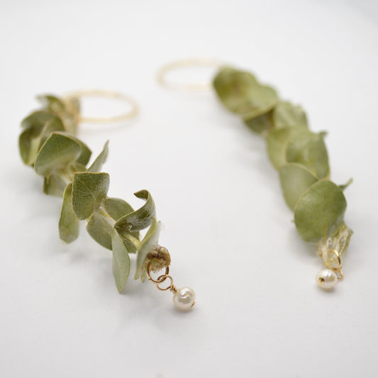 Spiral Eucalyptus Rock Candy Hoops with Freshwater Pearls